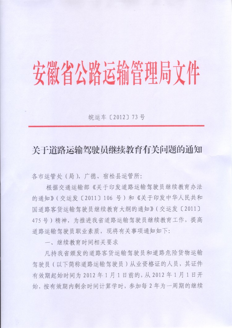 关于印发《道路运输驾驶员继续教育办法》的通知