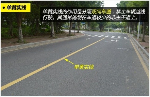 单黄实线的作用是禁止双方向车辆越线或压线行驶。单黄实线一般施划于单方向只有一条车道或一条机动车道和一条非机动车道道路、有其他危险需要禁止超车的路段。