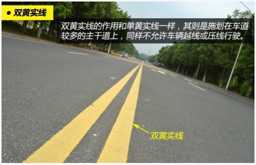 双黄实线的作用和单黄实线一样,也是禁止双方向车辆越线或压线行驶。双黄实线一般施划于单方向有两条或两条以上机动车道,而且没有设置实体中央分隔带的道路上。