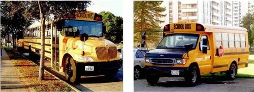 加拿大:加拿大校车的坚固程度高于任何其他车辆,且根据学生特点增加了防撞、阻燃保护和其他一些安全措施。除了和美国一样,校车车身被喷成明亮的黄色,使其在道路上易于识别外,加拿大校车车体内加装数条加强钢梁,增强车身的牢固度 。油箱周围则罩上了一个钢筋笼,以免油箱受到碰撞后漏油起火 。安装防碎玻璃避免撞车后玻璃破碎伤及孩子。